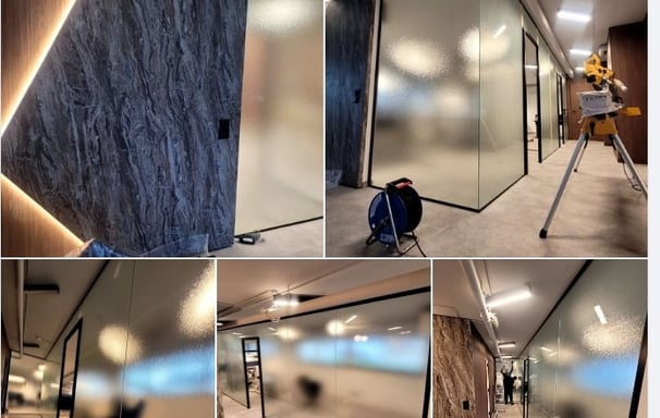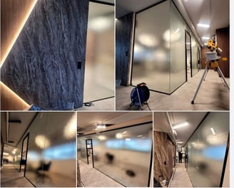 Berėmio stiklo pertvaros biuruose ir namuose.